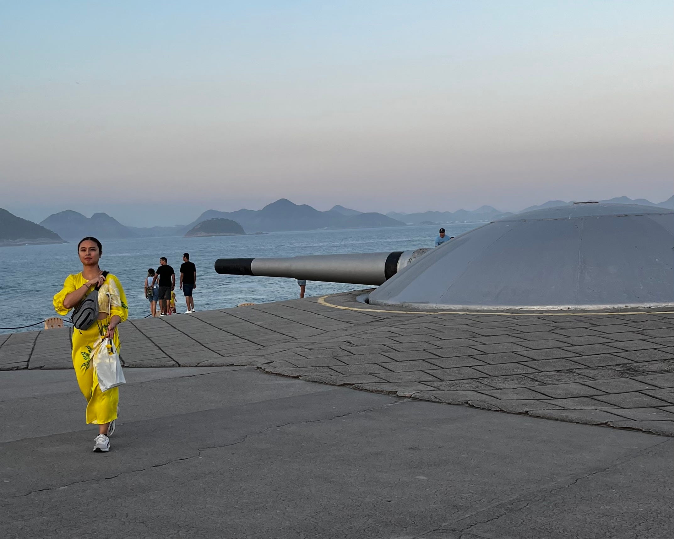 With the sun low on the horizon, you enter the military fort and watch the inner workings of the great cannons on top.