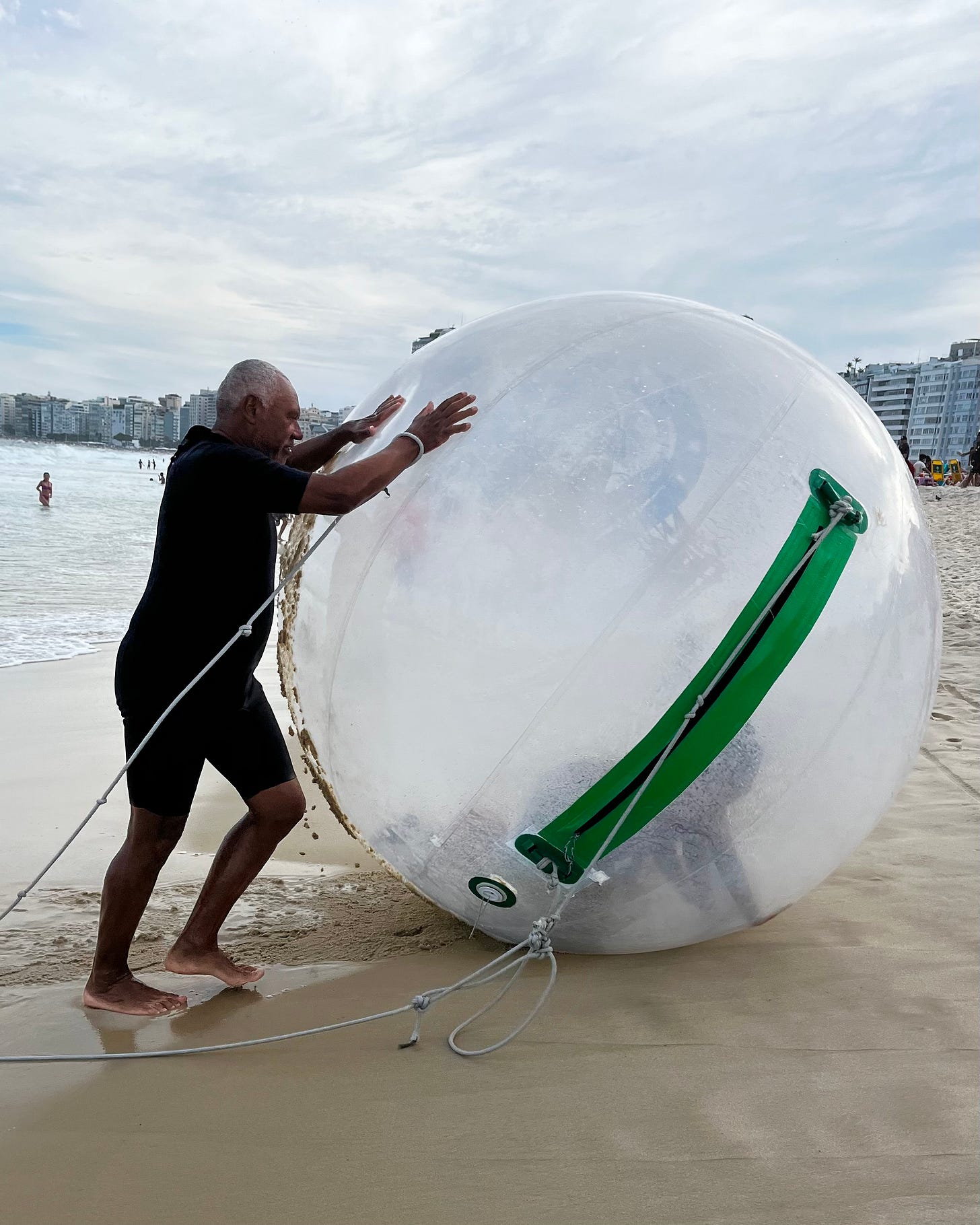 You join a swimming race or pay someone to step into a transparent plastic ball to be tossed around in the breakers. Or you’re the tosser, pulling the plastic ball filled with excited screams through the surf and rolling it back up the beach.