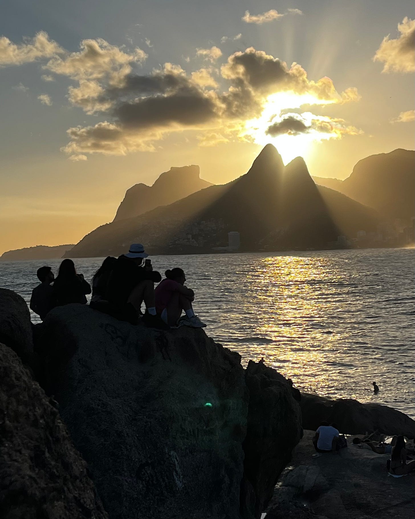 Each beach hut has its own musicians, and you try to name their styles. Is it Samba? Copacabana-born Bossa Nova? Or Funk Carioca? You dance a little, just to try it out, and feel the rhythms in your body. You imagine what this bay must be like during Carnaval or the Gay Pride Parade.