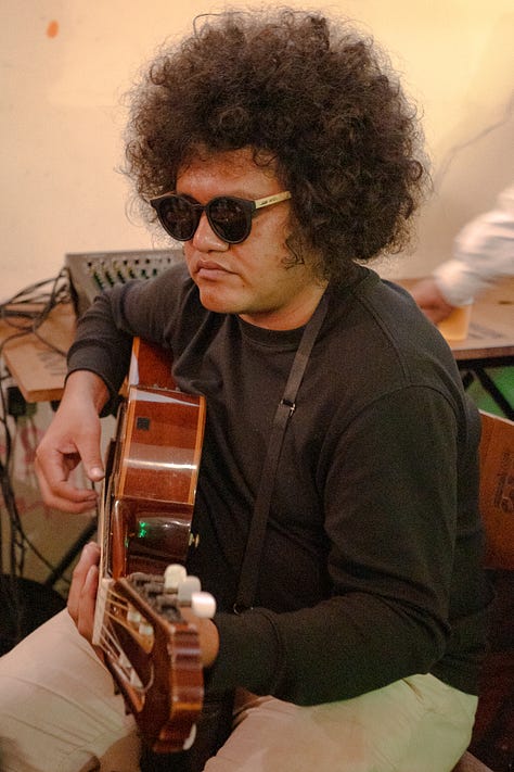 The bar is full, so we stay on the street with the other lucky listeners. There’s a strong sense of community, of shared awe. Middle-aged women dance in threes and fours, connecting with one another in visible yet unnamable ways. Old gentlemen make subtle, expert moves. Young girls swing their hips with incredible agility.