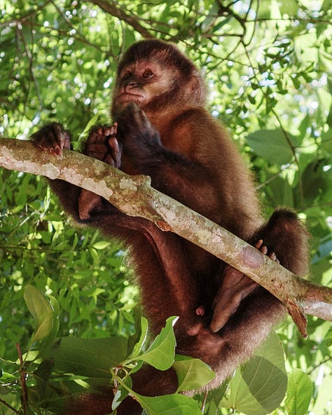 We encountered wildlife wherever we went, even inside the cities. We spied opossums, marmosets, and monkeys, saw a snake coiled on a rock, and watched far more gorgeous birds than I can name.