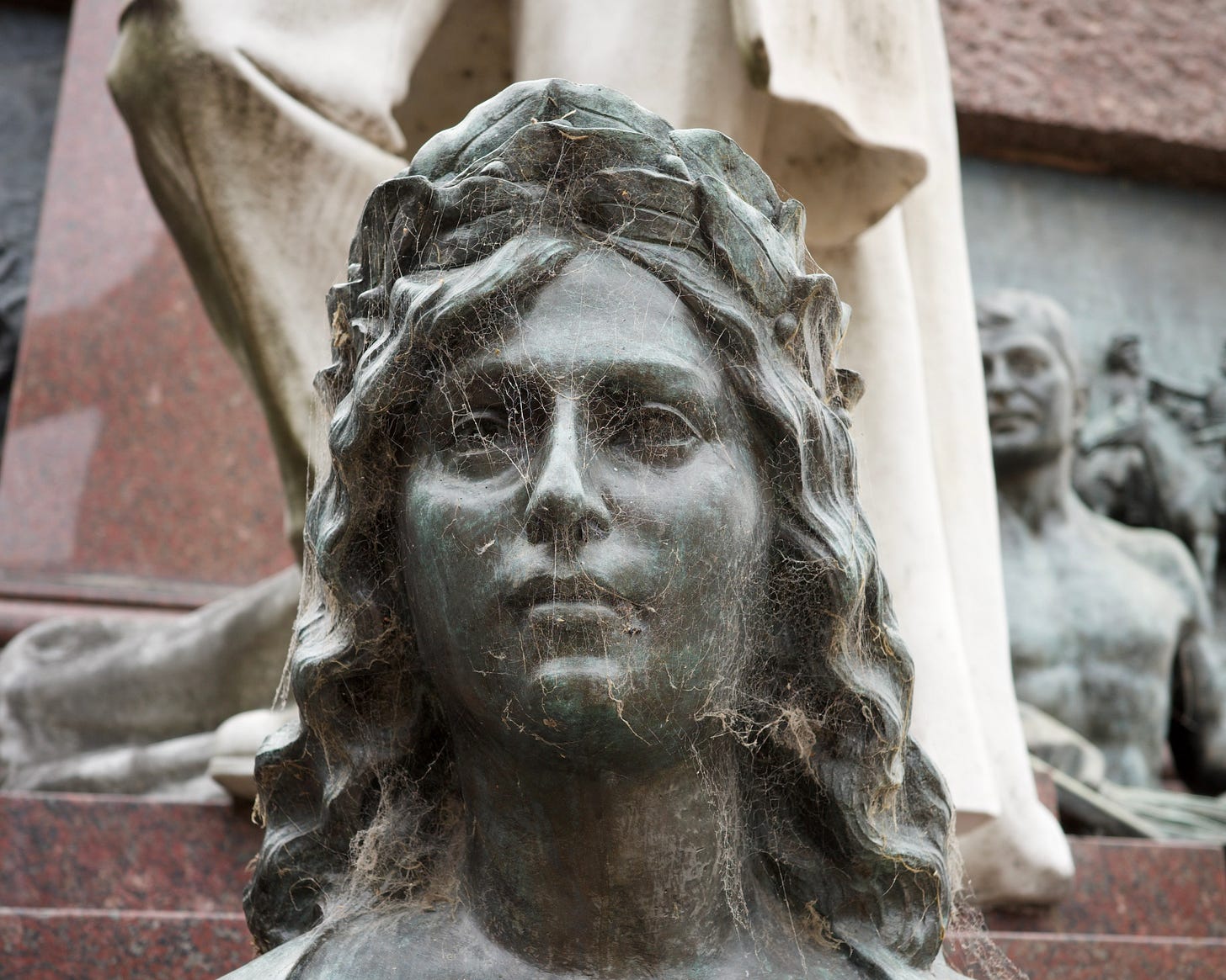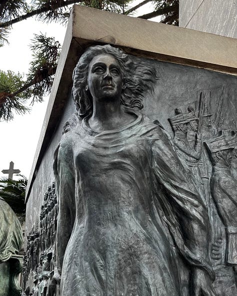 Her mausoleum contains a gorgeous Art Nouveau statue that mirrors her tragic tale: she’s holding the door to her vault, moving between the living and the dead.