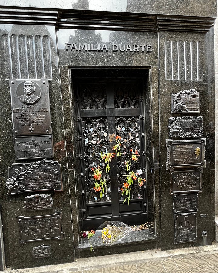 We finally arrive at the graveside most other visitors here have come to see, that of Eva Perón. On the metro ride toward Recoleta, I read up on her and her husband, Juan Perón, a man selected as Argentina’s president three times.